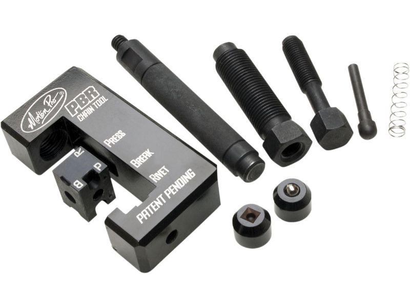 Versatile design will remove chain pins, press master-link plates and rivet hollow nose and soft nose (quad stake) master link pins on O-ring and non O-ring type chains
