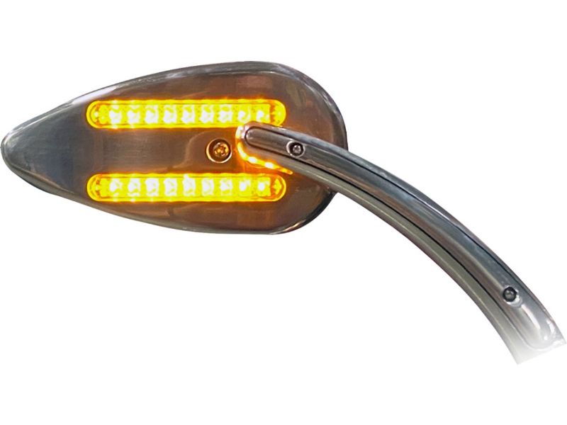 Modern teardrop style mirrors combine forward and rear facing LEDs behind smoked lenses