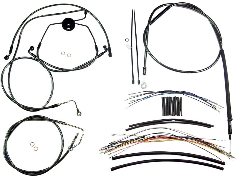 2. Kit includes throttle and idle cables of throttle-by-wire extensions, clutch cable or hydraulic clutch line, brake lines, copper crush washers, hardware, and any necessary switch wiring of turn signal extension, unless otherwise noted