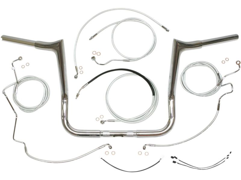 Kits include: Magnum Viking Handlebars, throttle and idle cables or Throttle-By-Wire extensions, clutch cable or hydraulic clutch line, brake lines, copper crush washers, hardware and any necessary switch or turn signal extensions