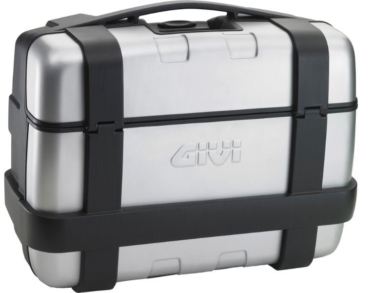 GIVI has ventured into the adventure touring market with the new Trekker series. These aluminum/polypropylene cases utilize the patented GIVI MONOKEY® system giving a lockable, waterproof and easily removable case option. The 33 and 46 liter GIVI TREKKER series are their newest adventure touring cases utilizing a unique full and partial lid opening system. The spacious 52 liter top case does not sport the dual opening system but does allow the storage for two modular helmets where the other sizes do not. Made from a combination of polypropylene and aluminum panels, the TREKKER series with its patented MONOKEY® latching system now offer the convenience of GIVI hard cases in a more rugged style for the adventure touring motorcycle rider.