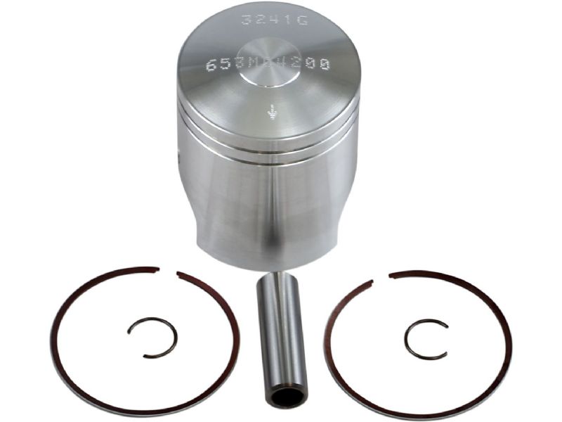 Features forged pistons, rings, wrist pins, and circlips
