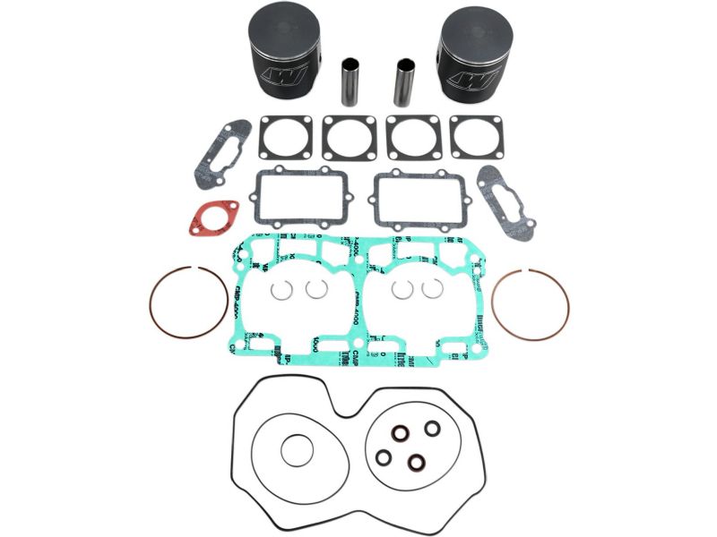 - Kit includes forged pistons, rings, wrist pins, circlips and top end gasket set