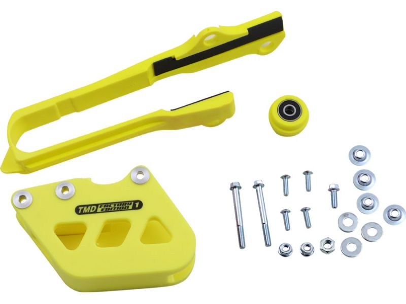 1. The kit includes dirt cross chain slider, lower powerlip roller or frame pad, and rear chain guide (either factory edition #1 or #2)