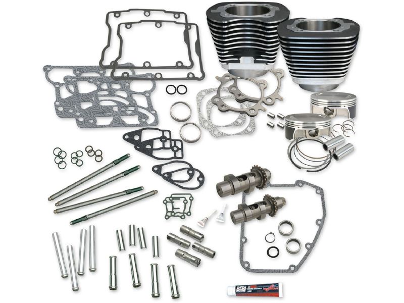 Kit includes; S&S cylinders with gaskets, piston set with rings, top end gasket kit, pushrods, tappets, 585CE chain-drive easy start cams and instructions
