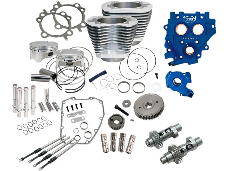 Includes an S&S 4- big-bore cylinder kit with 10.5:1 pistons, S&S 585 Easy Start cams, S&S Quickee Pushrods, and Premium Hydraulic tappets to make the most of the added displacement