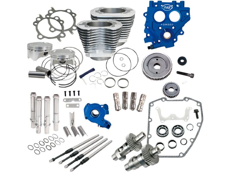 S&S 4.000- Big-Bore Cylinders, Piston Kits, S&S 585 Easy StartĀ® Cams, S&S Quickee Pushrods, TC3 Cam Support Plate, TC3 Oil Pump, and Precision Hydraulic Tappets are included in this kit