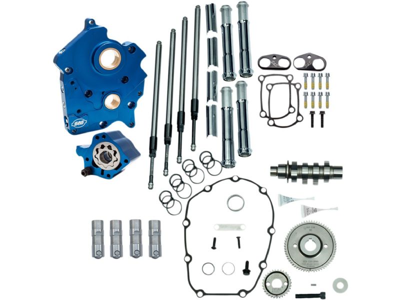 Cam Chest Kit with Plate - Gear Drive - Water Cooled - 475 Cam - Chrome Pushrods -M8