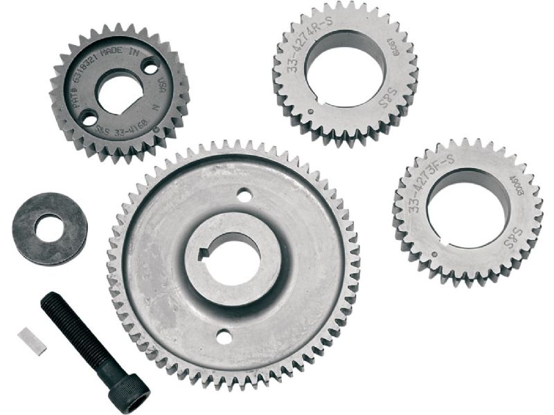 1. A four-gear set is required for gear-driven cams that do not come with secondary cam gears; includes two secondary cam gears, outer cam drive gear, outer pinion drive gear and mounting hardware