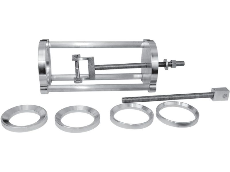 Uses a 19 mm wrench (not included) to remove shock spring and includes four adapters for different size spring collars (60 mm, 66 mm, 72 mm, 75 mm); also includes eyelet and clevis adapter