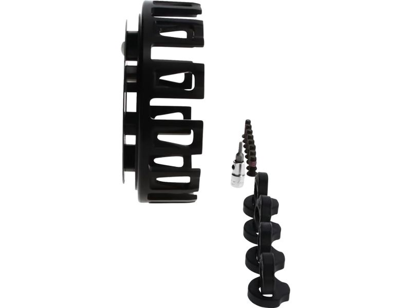 Sophisticated hard-anodising guarantees extended life under severest racing conditions and produces an ultra tough abrasive resistant surface and ensures a long life of smooth clutch operation through the elimination of wear on the sides of the clutch basket tabs