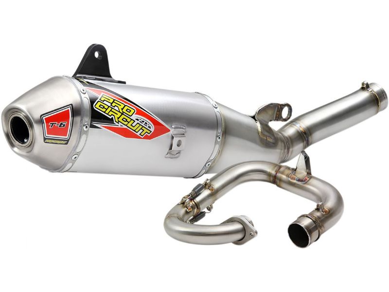 1. The T-6 Stainless Steel Exhaust System offers the same benefits as Ti-6 Titanium Exhaust System, but the T-6 is constructed of stainless steel and aluminum for increased strength and durability while giving riders a more affordable alternative to titanium