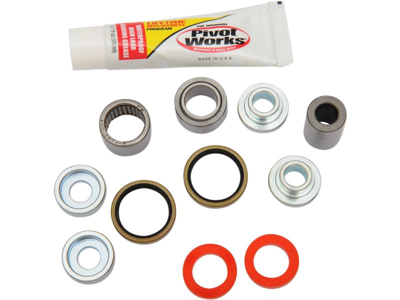 3. Some shock absorbers on Kawasaki and Honda models use a clevis to connect shock to the linkage. The bearing, collar and seals that are pressed into the linkage arm are included in the Pivot Works Shock Kit.
