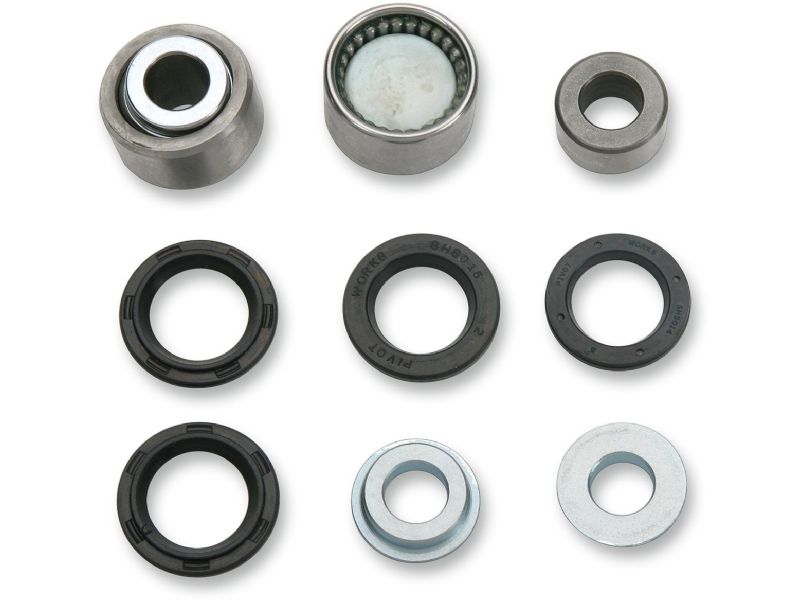 3. Some shock absorbers on Kawasaki and Honda models use a clevis to connect shock to the linkage. The bearing, collar and seals that are pressed into the linkage arm are included in the Pivot Works Shock Kit.