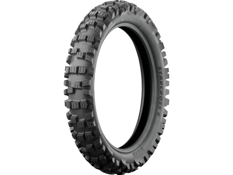 (1) Based on internal testing conducted in 2021 in Vertaizon, France on intermediate track using a '20 Yamaha 450 YZF fitted with a new 110/90-19 Michelin® StarCross® 6 Medium Hard compared with a new Michelin® StarCross® 5 Medium rear tire. Actual results may vary.