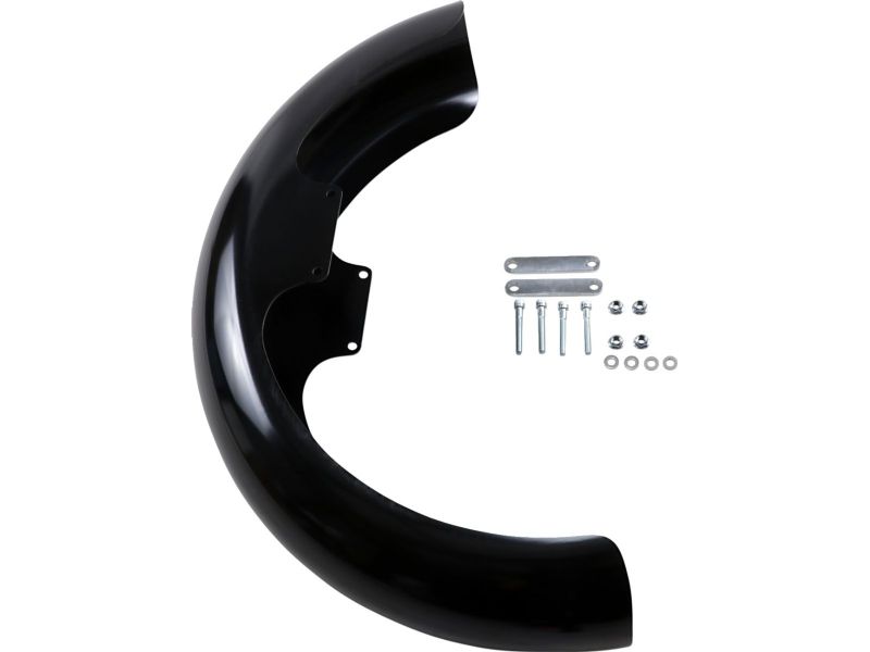 Steel fender is thick enough to add rigidity to the front end by acting like a fork brace, but can still be cut or shaped enough for an even more Kustom appearance