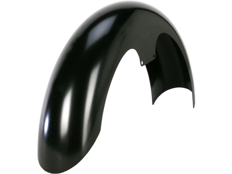 Steel fender is thick enough to add rigidity to the front end by acting like a fork brace, but can still be cut or shaped enough for an even more Kustom appearance