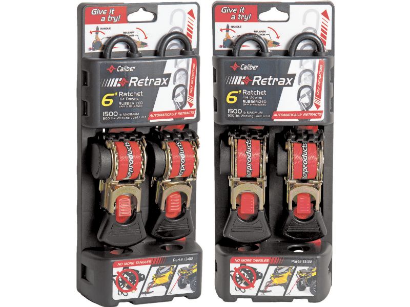 Although there are retractable straps on the market we have developed this one specifically for our power sports market with 2” hook that has an integrated spring loaded clip, fancy graphics and interactive packaging that communicates the function of this product