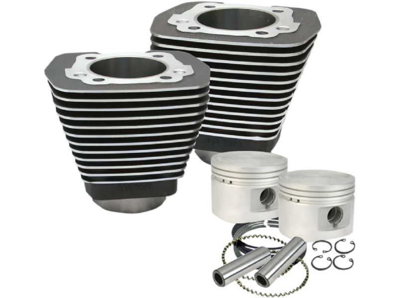 Cylinder and piston kits contain S&S 3-1/2- bore (80-) cylinders and forged pistons, rings, wrist pins, and head and base gaskets
