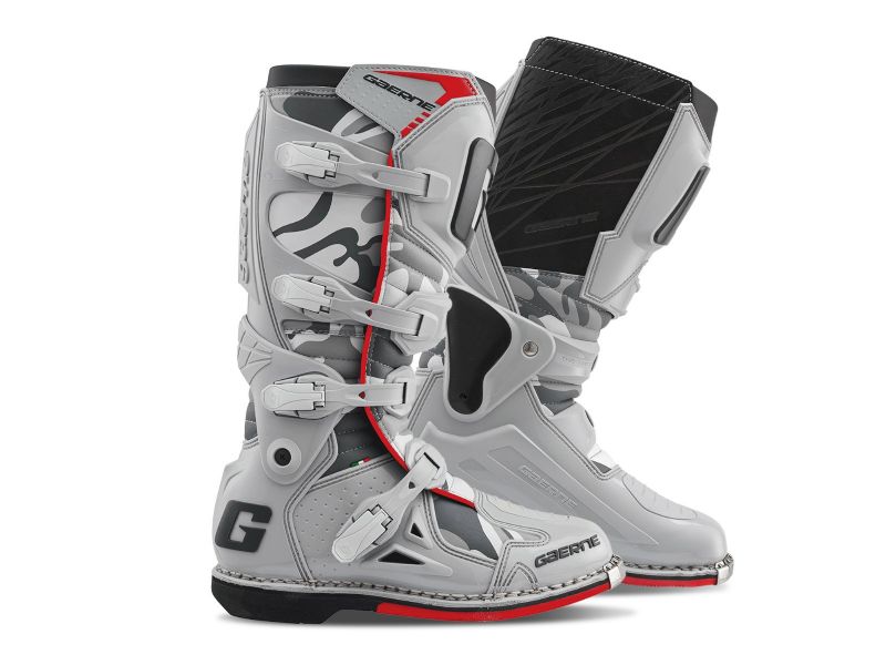 This innovative boot has a sleek new look. Partially due to the exclusive Gaerne “wrap around” ankle pivot system. This new, lightweight feature allows the rider more ankle support while at the same time gives you a comfortable fit. New alloy buckles, by removing the first two buckles on the top it is possible to make the opening wider to accommodate a bigger leg or knee-brace. Heavy duty burn guard, toe bumper and the trademark Gaerne “Enduro” sole complete the task.