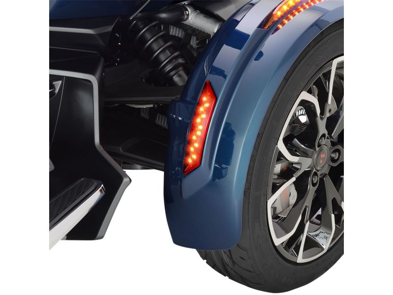 Replaces the OEM front rear-facing reflectors with red multi-function front fender center LED lights housing 24 SMD LEDs