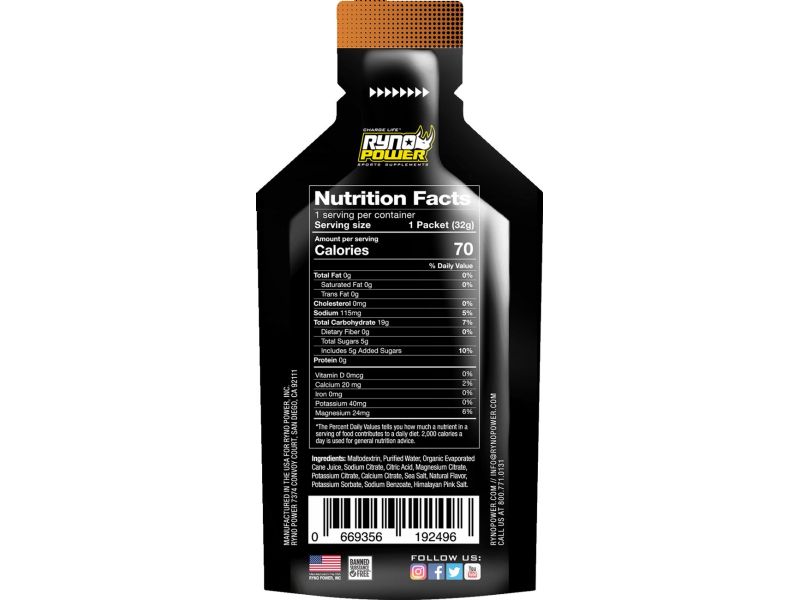 - 70 calories per 1.1 oz. (32g) gel pouch - Only 5g of organic sugar