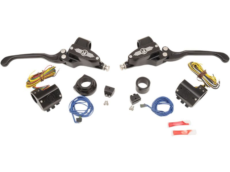 - Kits include brake master cylinder, brake light switch, starter interrupt switch, left and right side switch housings, dual cable snap in or electronic throttle by wire throttle housing, clutch side spacer and cable clutch perch or hydraulic clutch master cylinder
