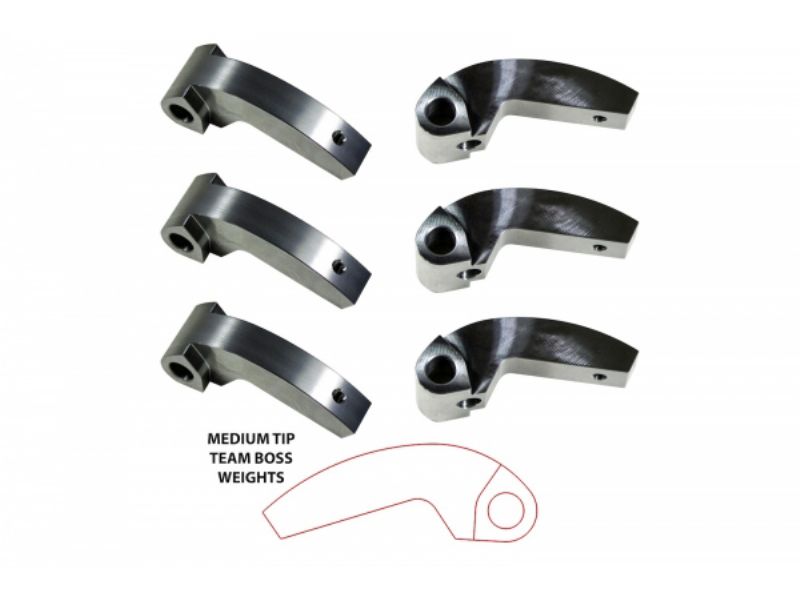 Standard Profile Adjustable Machined Weights for new Team / Arctic Cat Primary clutch These new T series weights are built specifically for the new Arctic Cat Team primary clutches. They are built to with stand all requirements that come with these new clutches. They come heat treated to proper specs required with these new clutches, and have a Black Oxide coating to prevent wear and corrosion.