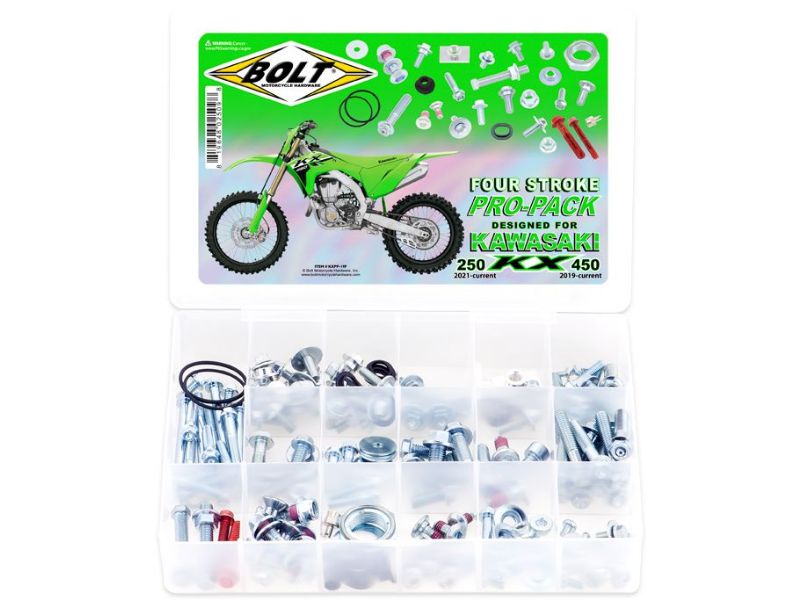 Four Stroke Pro Packs include hardware for wheels, chassis, driveline, bodywork, and much more! Perfect for a bike overhaul or a racer who works on the bike often