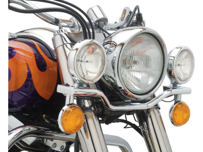 Let Cobra be your guiding light in the world of cruiser motorcycles. All of Cobra's light bars really shine and, best of all, bolt right on to the stock triple clamps without difficulty. Top-notch mounting hardware retains the original turn signals and ensures that the spotlights never appear to be an afterthought. Chrome-plated, snap-in visors are available separately.