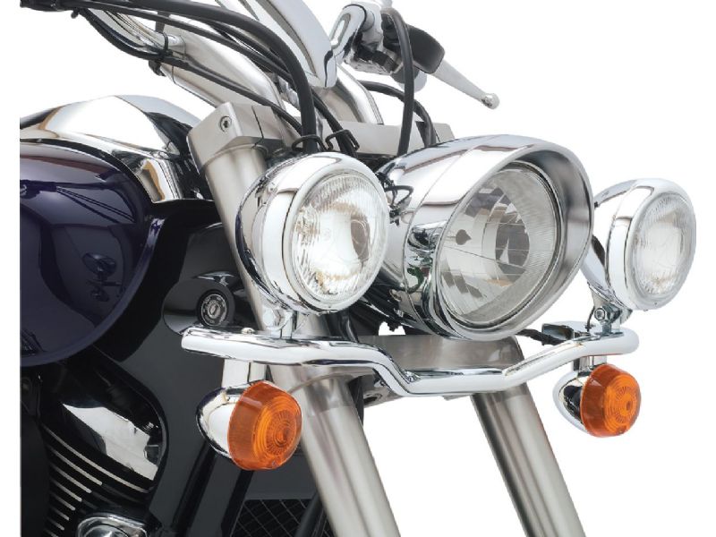 Let Cobra be your guiding light in the world of cruiser motorcycles. All of Cobra's light bars really shine and, best of all, bolt right on to the stock triple clamps without difficulty. Top-notch mounting hardware retains the original turn signals and ensures that the spotlights never appear to be an afterthought. Chrome-plated, snap-in visors are available separately.