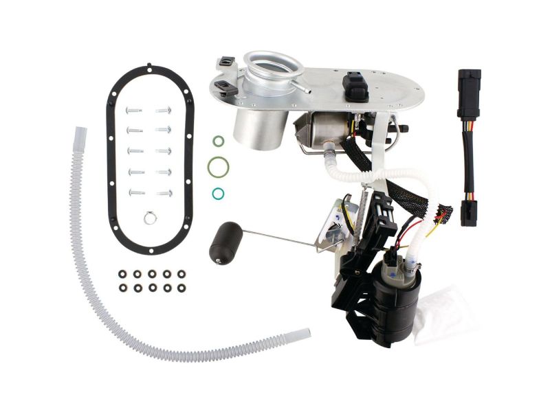 Includes sending unit, O-ring kit to reseal dry break connector, replacement fuel line from quick connector to the module, tank gasket, hardware (including seals) , and locking ring when applicable.