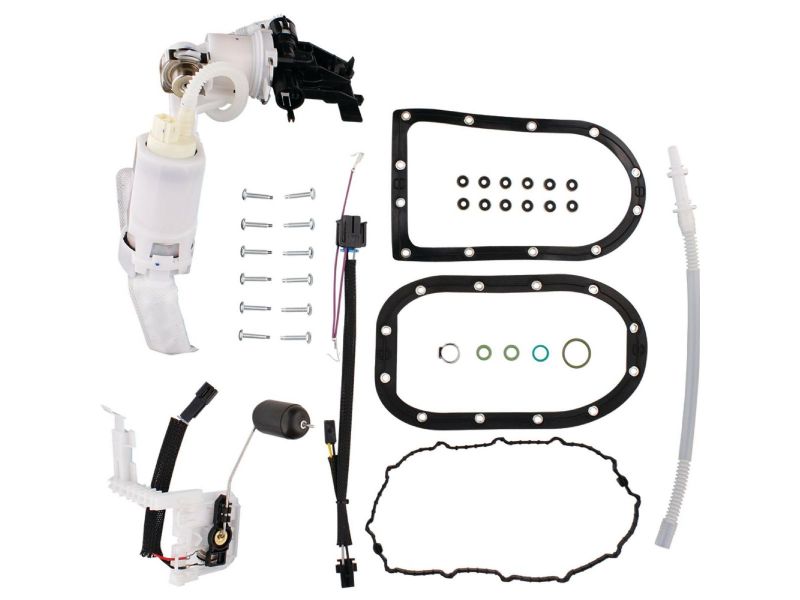 4. Includes sending unit, O-ring kit to reseal dry break connector, replacement fuel line from quick connector to the module, tank gasket, hardware (including seals) , and locking ring when applicable.