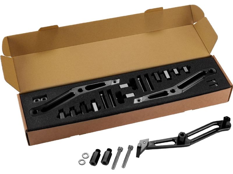 The new Billet reservoir brackets move the reservoirs further back providing easy access to your adjustments and extra clearance for your bag lids