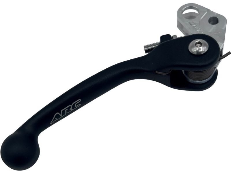 This is the original folding lever. They are adjustable for hand size and move to prevent damage in a crash. ARC‘s aluminum levers are forged for durability and then CNC machined for accuracy. The "knee" is made from billet aluminum. All of the hardware is top grade. These are the same levers that many of the top pro's run.