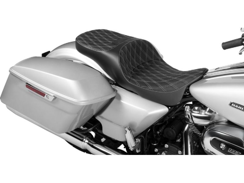 Extended Reach Freedom Seat - Vinyl - Double Diamond - Silver Stitch - FLT/FLH `09-`24