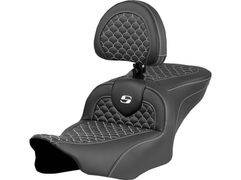 Roadsofa-„¢ Seat - Dragon Scale Stitch - White Stitch - w/ Backrest - FLTR/FLHX `23-`24