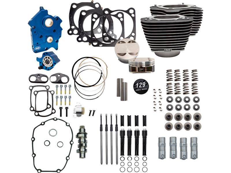 - Big-bore bolt-on kit increases 107- M8 to 129- with no case machining required