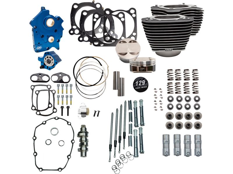 - Big-bore bolt-on kit increases 107- M8 to 129- with no case machining required