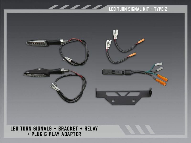 7. LED Turn Signal Kit for V2 FE kits - These kits include Yoshimura LED Signals Turn Signals and include a mounting bracket; plug & play wiring adapters and a relay matched to your bike for easy installation.