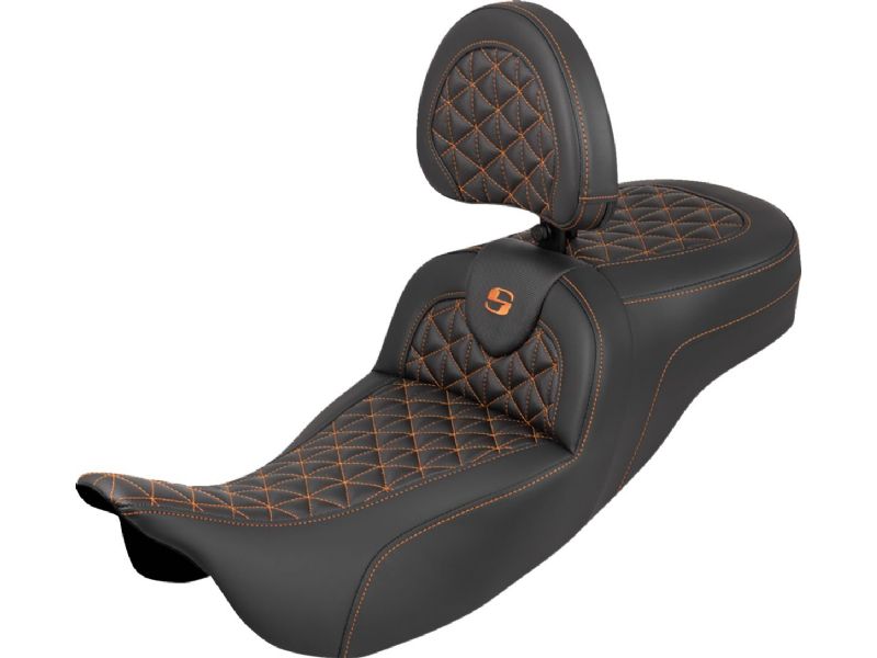 RoadSofa- Tri Gripper Seat - Standard Reach - Orange Stitch - w/ Backrest - FLH/FLT `08-`25