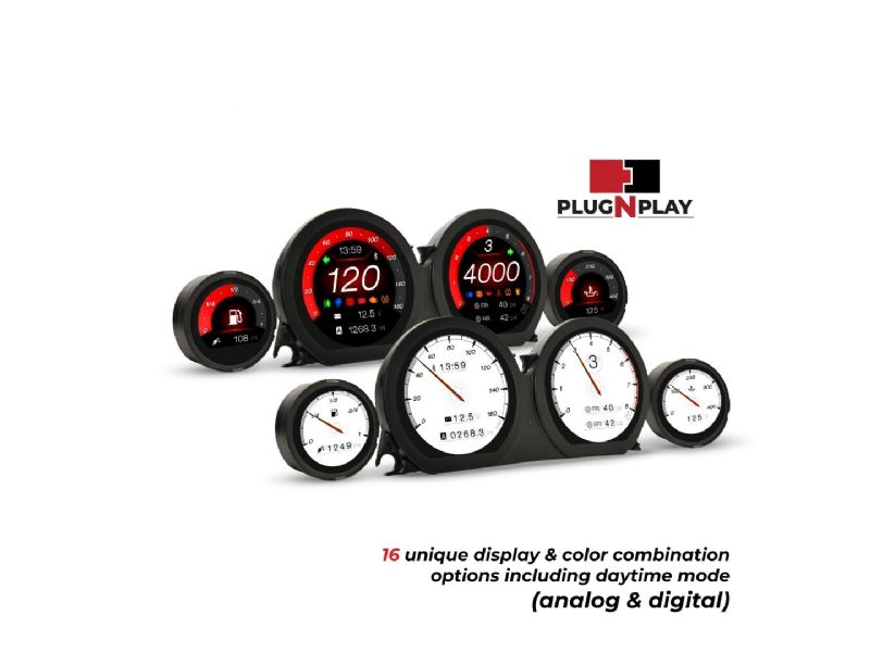 Match your motorcycle’s style by instantly changing between the analog and digital interface, as well as 7 different backlight colors, providing up to 14 unique display combinations.