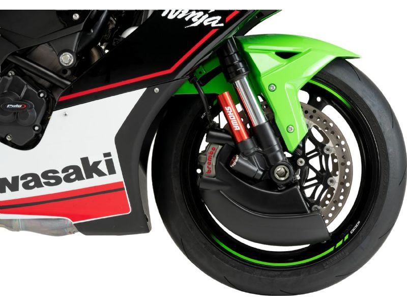 The design provides a sportier and more personalized aesthetic look, while eliminating turbulence at the front wheel by creating a partial lenticular cover that utilizes the motorcycle's aerodynamics, especially at high speeds