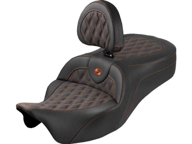 Roadsofa-„¢ King Seat - With Backrest - Lattice Stitch - Orange Stitch - FLH/FLT `08-`25