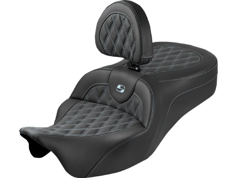 Roadsofa-„¢ King Seat - With Backrest - Lattice Stitch - Silver Stitch - FLH/FLT `08-`25