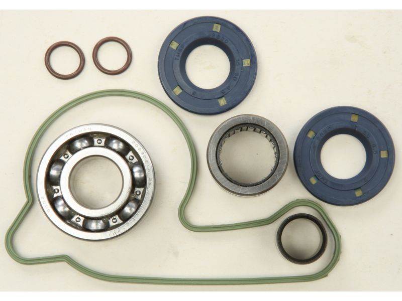 Hot Rods water pump repair kit includes water pump cover gasket or o-ring, water pump shaft bearing(s) and seal(s) to repair a leaking water pump seal and/or a failed bearing