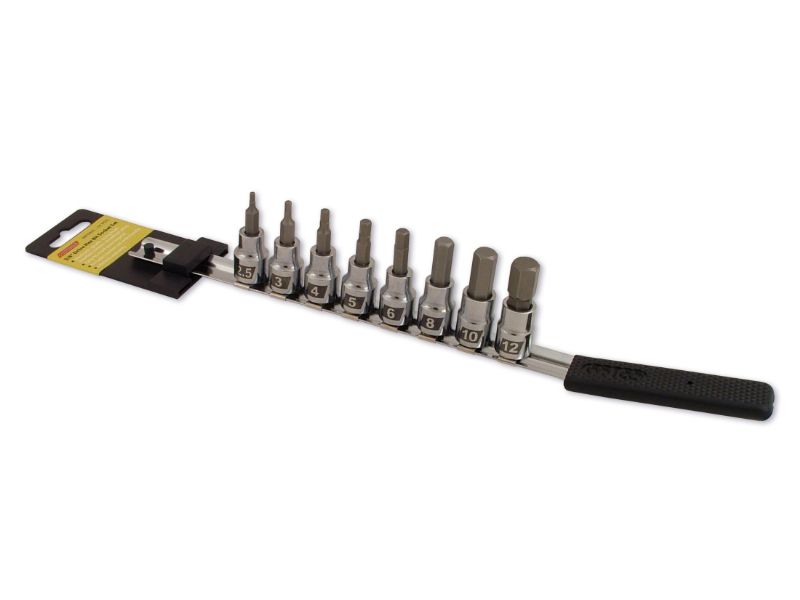- The 8-piece Metric Hex, 10-piece Inch Hex, and 10-piece Star ‘torx’ include durable metal storage rail to keep them organized for servicing a wide range of powersports vehicles including motorcycles, UTV, ATV, Snow, and Watercraft.