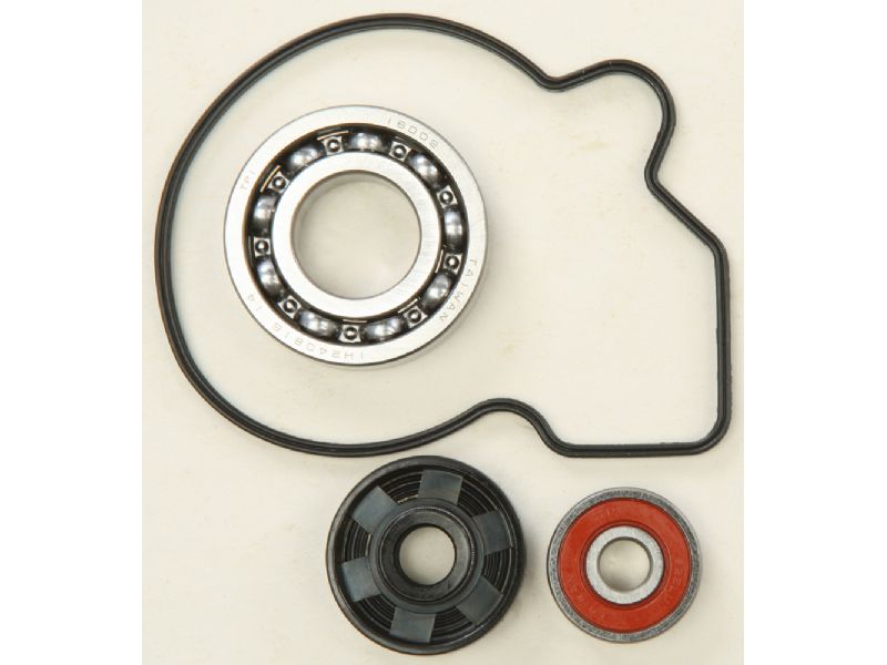 Hot Rods water pump repair kit includes water pump cover gasket or o-ring, water pump shaft bearing(s) and seal(s) to repair a leaking water pump seal and/or a failed bearing