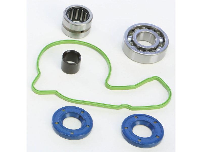Hot Rods water pump repair kit includes water pump cover gasket or o-ring, water pump shaft bearing(s) and seal(s) to repair a leaking water pump seal and/or a failed bearing