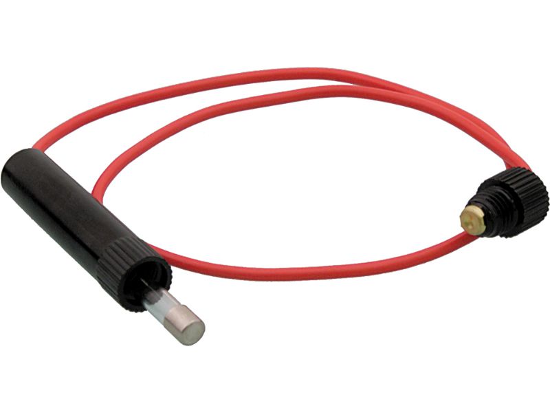 In-line fuse holder with 9 amp fuse and 6’’ of 16 gauge wire. Made of Nylon material. Spring loaded.